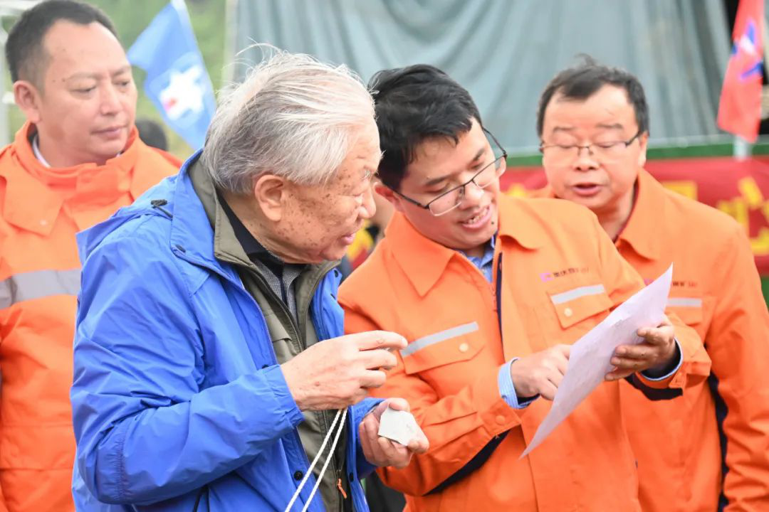 在局107地质队南川区九井向斜铝土矿深部普查项目现场,宋瑞祥检查了本次勘查见矿钻孔ZK5513及ZK4418的矿芯及野外编录资料,对矿体的品位、分布特征、规模等进行深入了解,详细地查看每一个数据,手拿放大镜仔细查看矿芯样品。宋瑞祥强调,要积极践行绿色发展理念,坚持以绿色勘查为重点进行钻探施工,以科学管理和先进技术为手段,最大限度减少对周边环境的破坏;要加强科技攻关,提升钻探工作的质量和效率,不断向钻探新领域进军,以优质钻探技术推动找矿实践取得新突破。