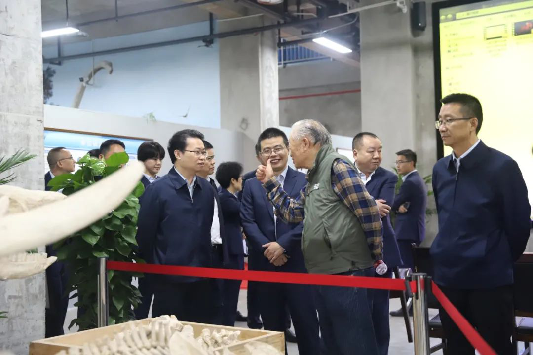 在局208地质队队史馆,宋瑞祥了解了全队发展历史、丰硕成果和荣誉贡献,并对208地质队十年支援三线建设、远赴非洲支援国家援埃计划和积极参与地灾防治等成绩作出肯定。在古生物科普馆,宋瑞祥听取了云阳黔江恐龙动物群、万州盐井沟动物群重要研究成果介绍,对其部分研究成果填补了早侏罗世和白垩纪研究空白等成果予以高度赞扬。