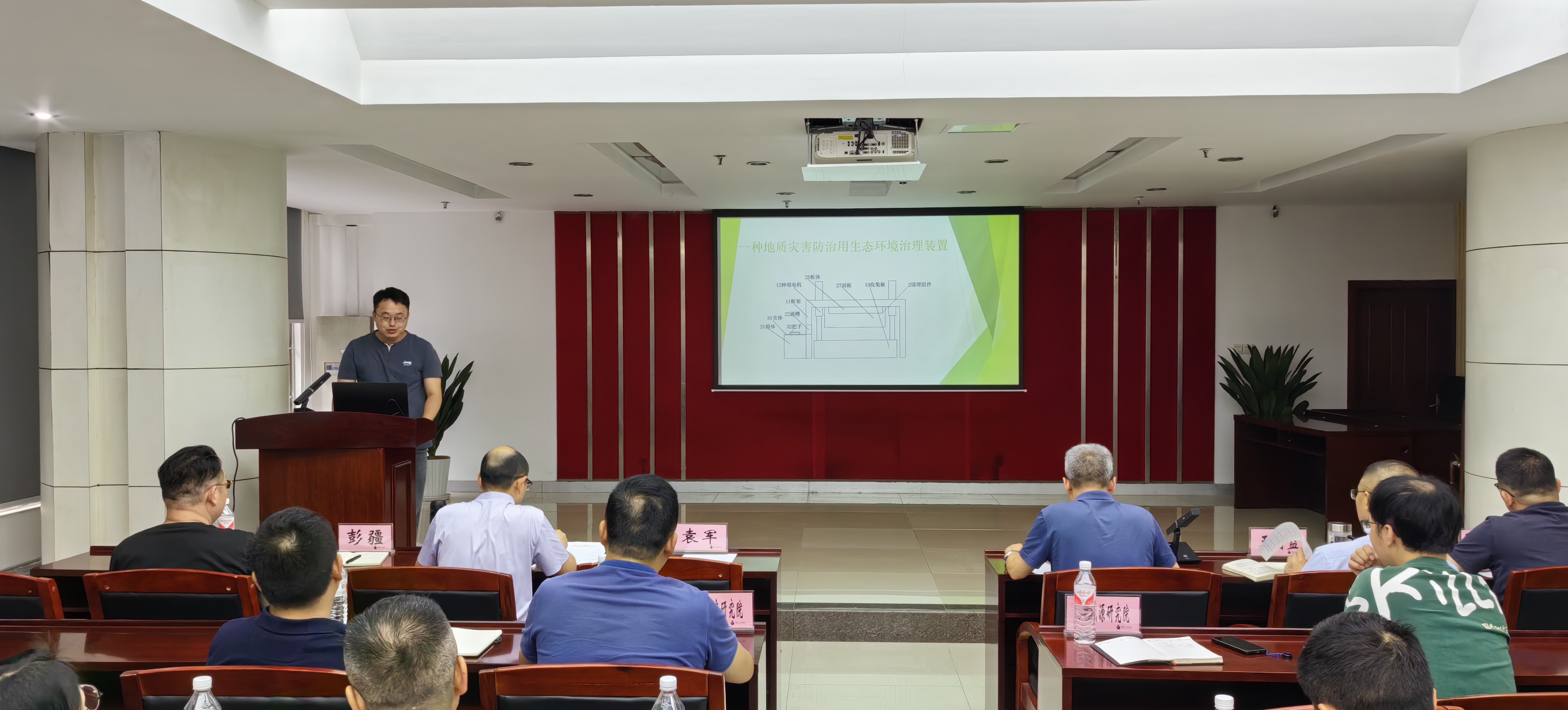 会议现场,技术人员分别汇报了15项科技创新成果情况。从用于水域测量的极化罐、煤地下原位燃烧及热交换的实验装置、动力煤原位燃烧集成采热系统、多种地质灾害防治和土地整治相关的技术设备与软件,到渝东北盆缘山区土地利用时空分异特征、重庆地区二叠系龙潭组煤系地层非常规气地质特征等研究成果,参会人员围绕多项科研成果展开交流。